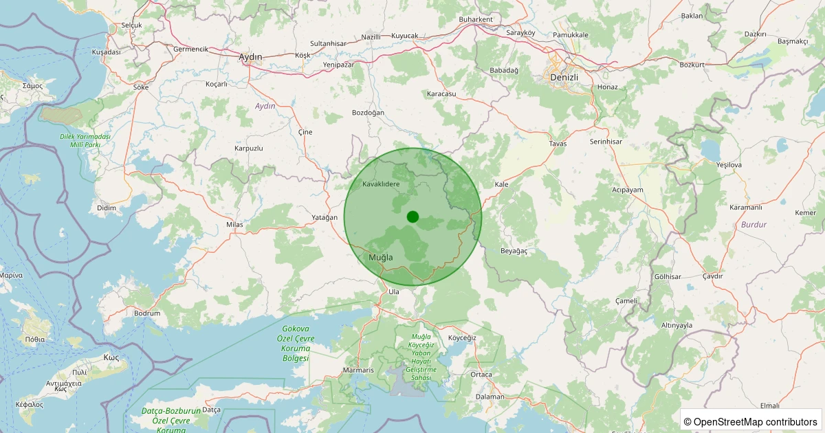 Son 7 gün içinde Menteşe - Şenyayla noktasından 100 km yarıçap içerisinde meydana gelen diğer depremler: