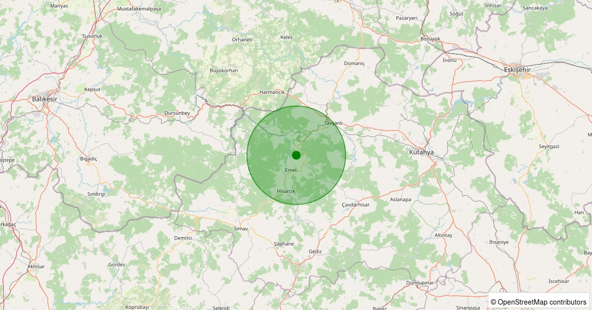 Son 7 gün içinde Emet - Günlüce Şehitler noktasından 100 km yarıçap içerisinde meydana gelen diğer depremler: