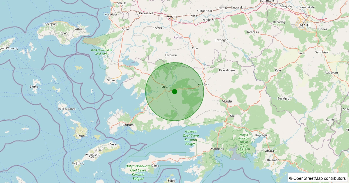 Son 7 gün içinde Milas - Tuzabat noktasından 100 km yarıçap içerisinde meydana gelen diğer depremler: