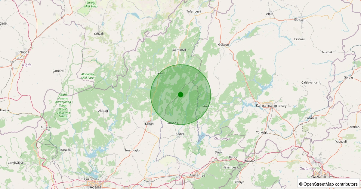 Son 7 gün içinde Kozan - Akçalıuşağı noktasından 100 km yarıçap içerisinde meydana gelen diğer depremler: