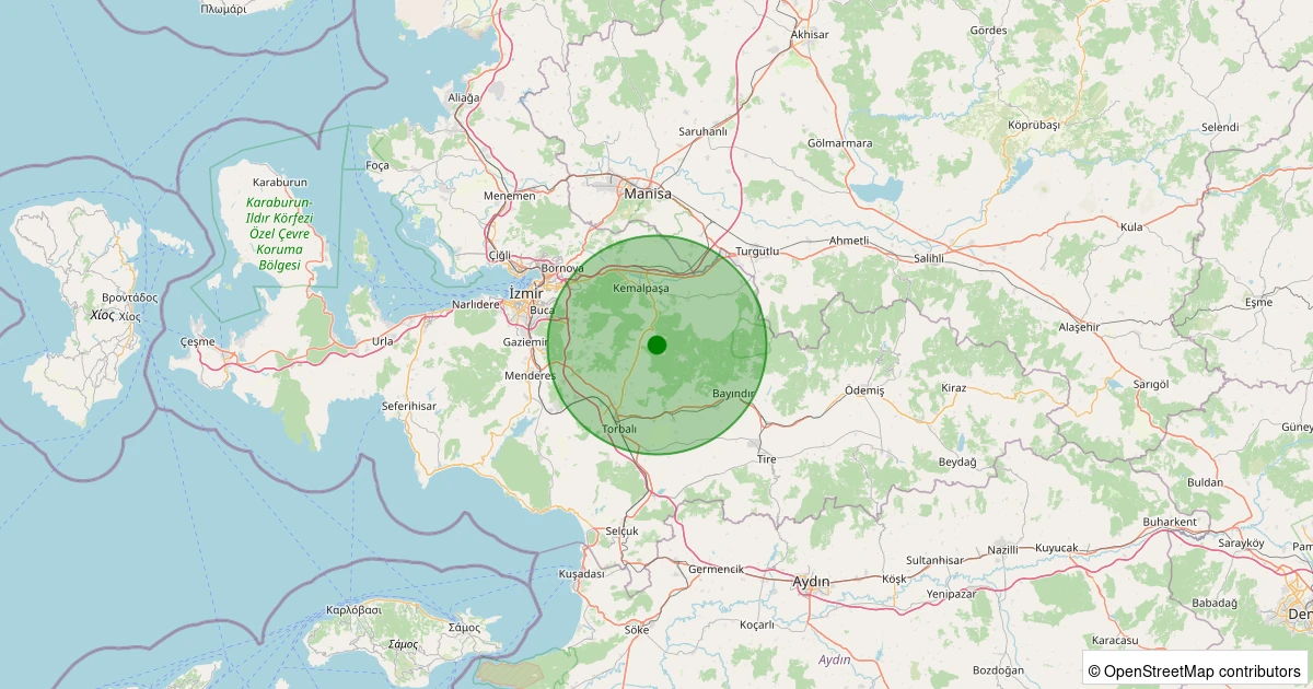 Son 7 gün içinde Kemalpaşa - Yeşilköy noktasından 100 km yarıçap içerisinde meydana gelen diğer depremler: