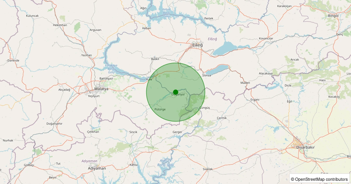 Son 7 gün içinde Doğanyol - Çolak noktasından 100 km yarıçap içerisinde meydana gelen diğer depremler: