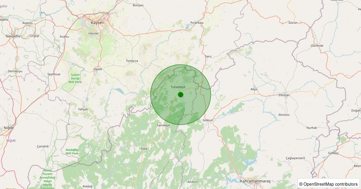 Son 7 gün içinde Tufanbeyli - Yamanlı noktasından 100 km yarıçap içerisinde meydana gelen diğer depremler: