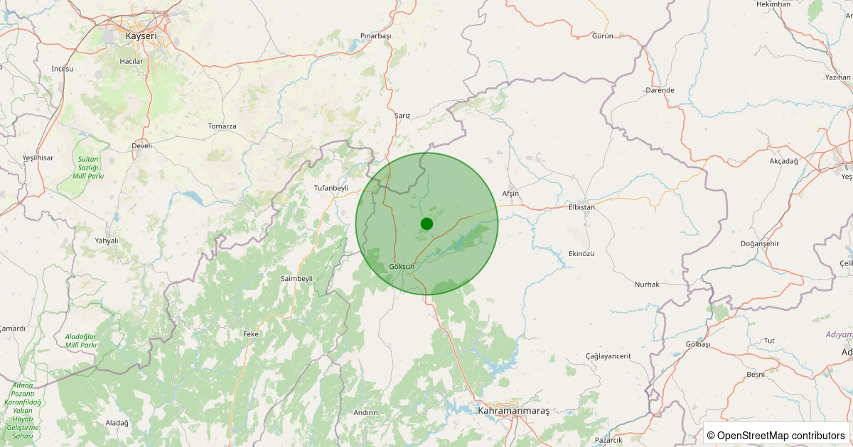 Son 7 gün içinde Göksun noktasından 100 km yarıçap içerisinde meydana gelen diğer depremler: