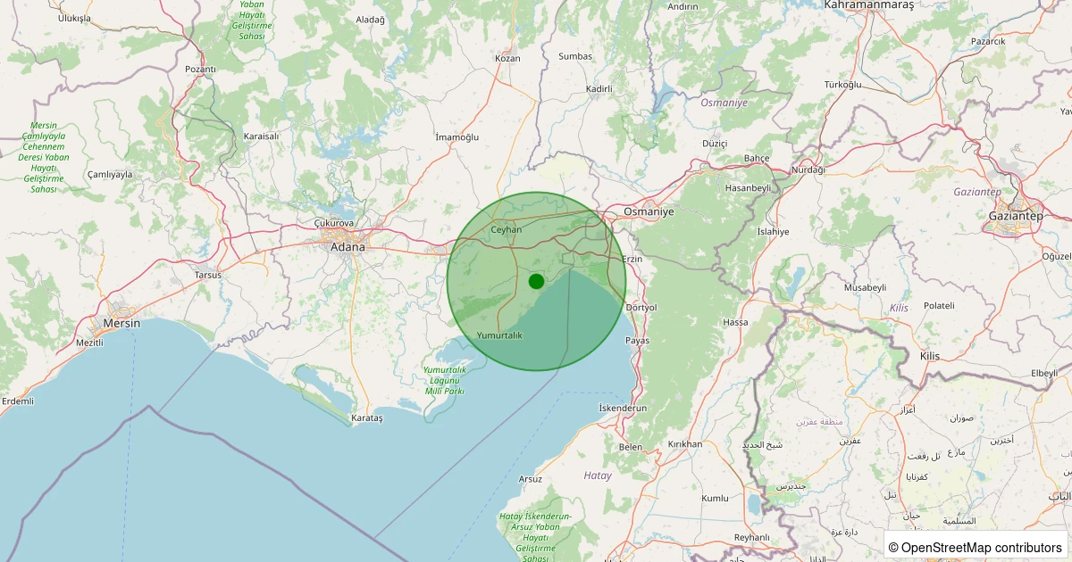 Son 7 gün içinde Ceyhan - Kurtkulağı noktasından 100 km yarıçap içerisinde meydana gelen diğer depremler: