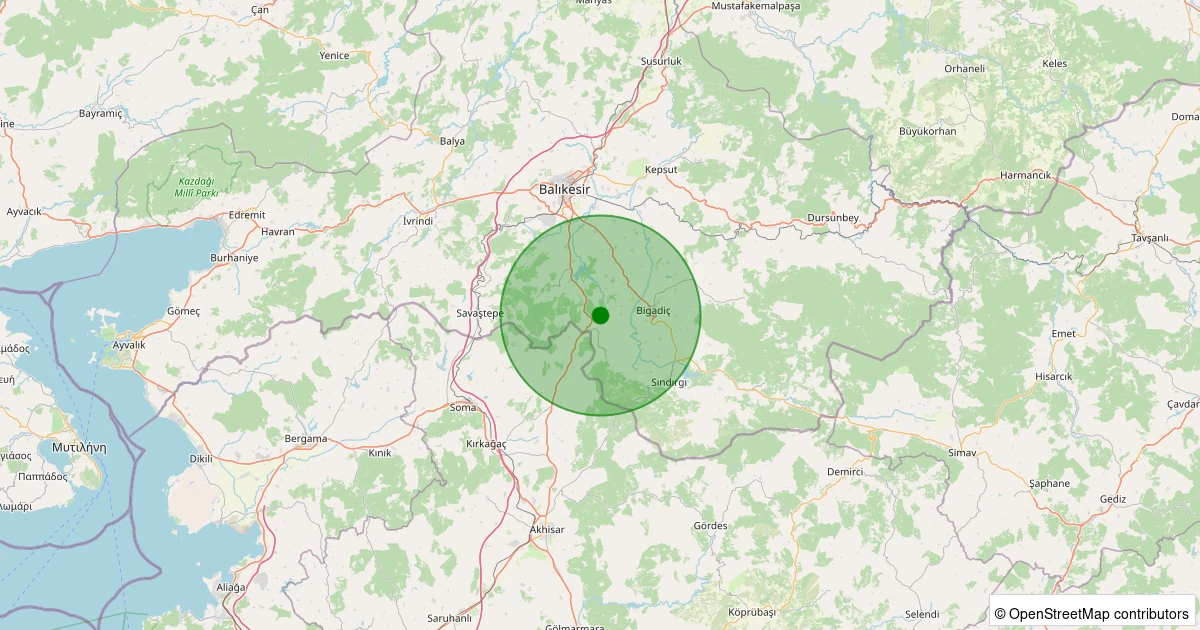 Son 7 gün içinde Bigadiç - Çayüstü noktasından 100 km yarıçap içerisinde meydana gelen diğer depremler: