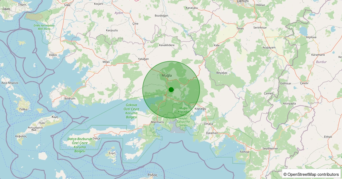 Son 7 gün içinde Ula - Gökçe noktasından 100 km yarıçap içerisinde meydana gelen diğer depremler: