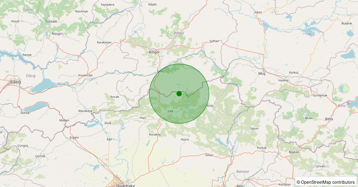 Son 7 gün içinde Lice - Ulucak Köyü noktasından 100 km yarıçap içerisinde meydana gelen diğer depremler: