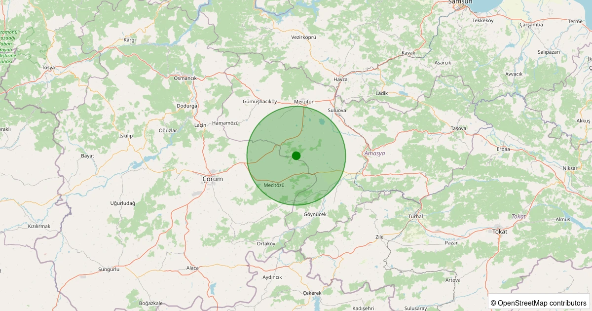Son 7 gün içinde Mecitözü - Konaç Köyü noktasından 100 km yarıçap içerisinde meydana gelen diğer depremler: