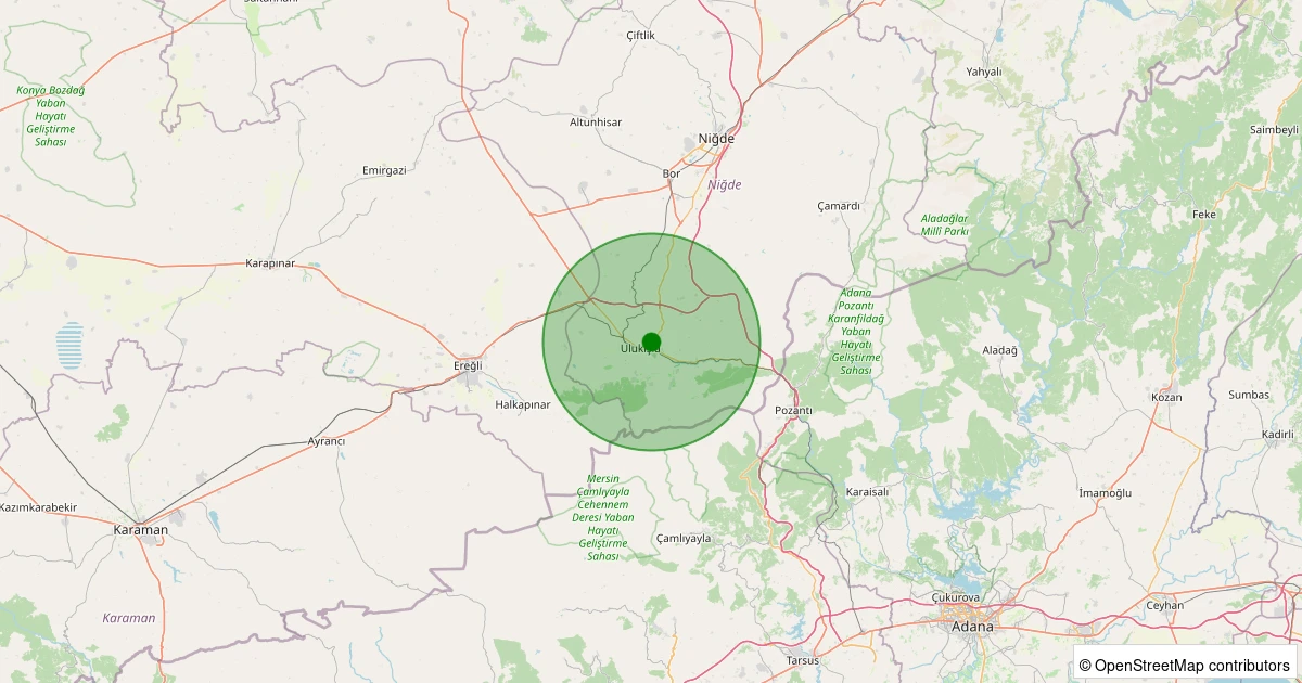 Son 7 gün içinde Ulukışla - Beyağıl Köyü noktasından 100 km yarıçap içerisinde meydana gelen diğer depremler: