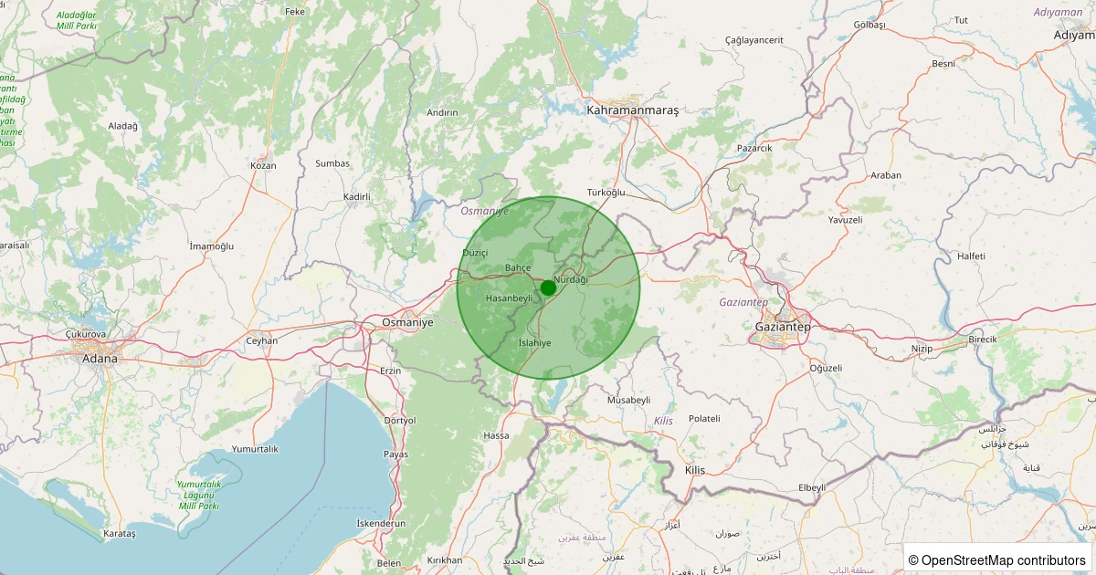 Son 7 gün içinde Bahçe - Kızlaç Köyü noktasından 100 km yarıçap içerisinde meydana gelen diğer depremler: