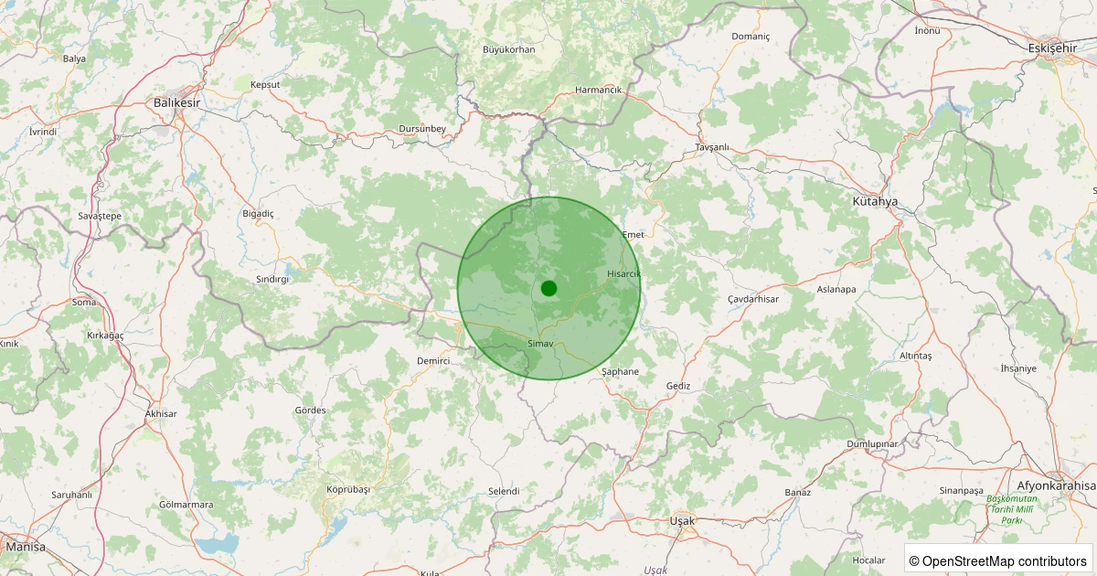 Son 7 gün içinde Simav - Yeşildere Köyü noktasından 100 km yarıçap içerisinde meydana gelen diğer depremler: