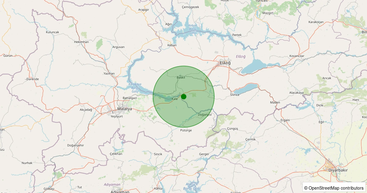 Son 7 gün içinde Baskil noktasından 100 km yarıçap içerisinde meydana gelen diğer depremler: