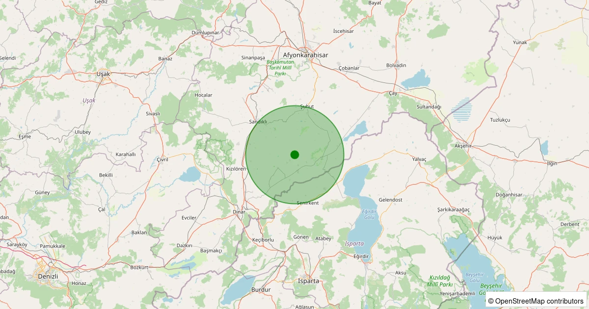 Son 7 gün içinde Dinar - Yıprak/Bahçelievler Köyü noktasından 100 km yarıçap içerisinde meydana gelen diğer depremler: