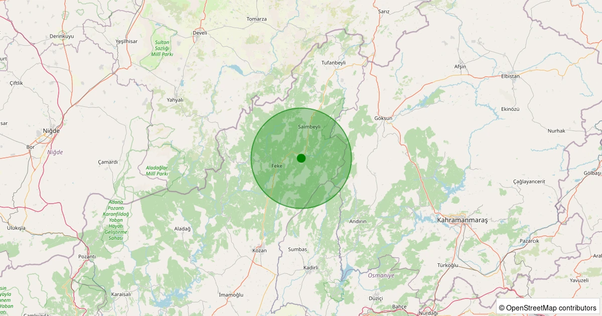 Son 7 gün içinde Saimbeyli noktasından 100 km yarıçap içerisinde meydana gelen diğer depremler: