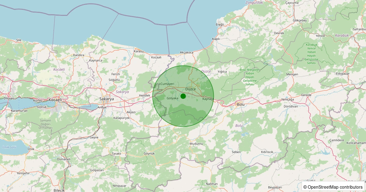 Son bir hafta içerisinde Düzce şehri Merkez - Yenikaraköy Köyü noktasından 100 km yarıçap içerisinde toplamda 32 deprem kaydedilmiştir. Bu depremlerden en büyüğü 2.7 büyüklüğünde ve en sığ odaklısı 4.50 kilometre derinlikte gerçekleşmiştir.