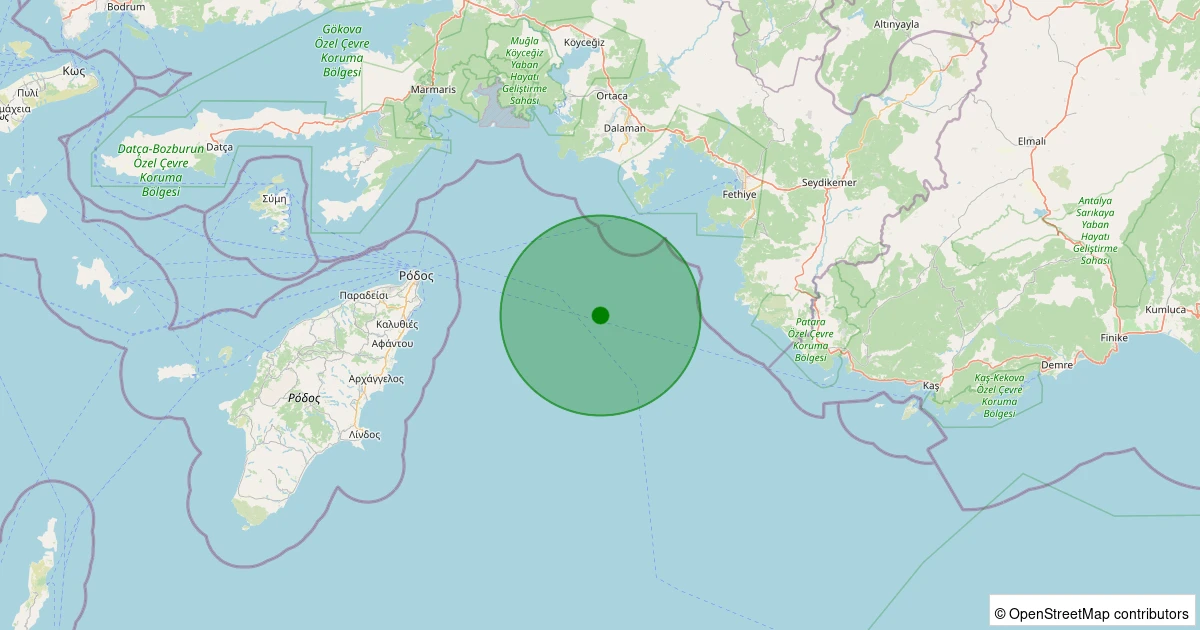 Son 7 gün içinde Akdeniz - [37.24 km] Fethiye (Muğla) noktasından 100 km yarıçap içerisinde meydana gelen diğer depremler:
