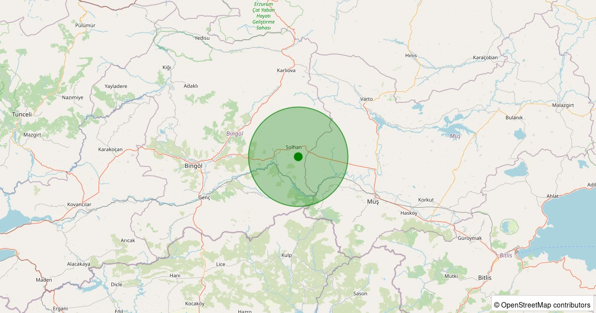 Son 7 gün içinde Solhan - Şimşirpınar Köyü noktasından 100 km yarıçap içerisinde meydana gelen diğer depremler: