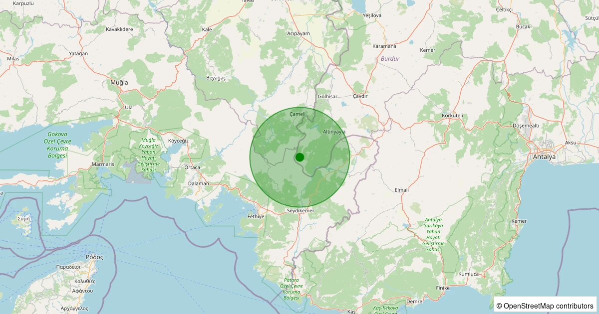 Son 7 gün içinde Çameli - Gürsu noktasından 100 km yarıçap içerisinde meydana gelen diğer depremler: