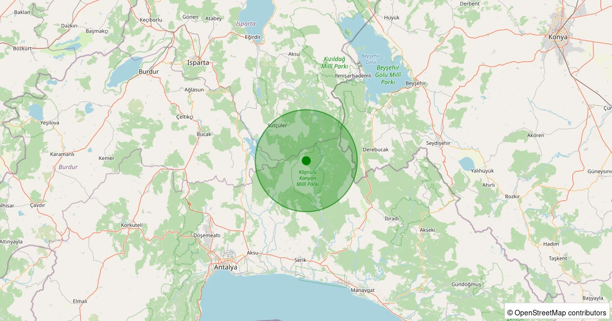 Son 7 gün içinde Manavgat - Çaltepe noktasından 100 km yarıçap içerisinde meydana gelen diğer depremler: