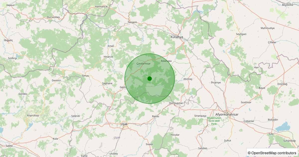 Son 7 gün içinde Aslanapa - Çamdibi Köyü noktasından 100 km yarıçap içerisinde meydana gelen diğer depremler: