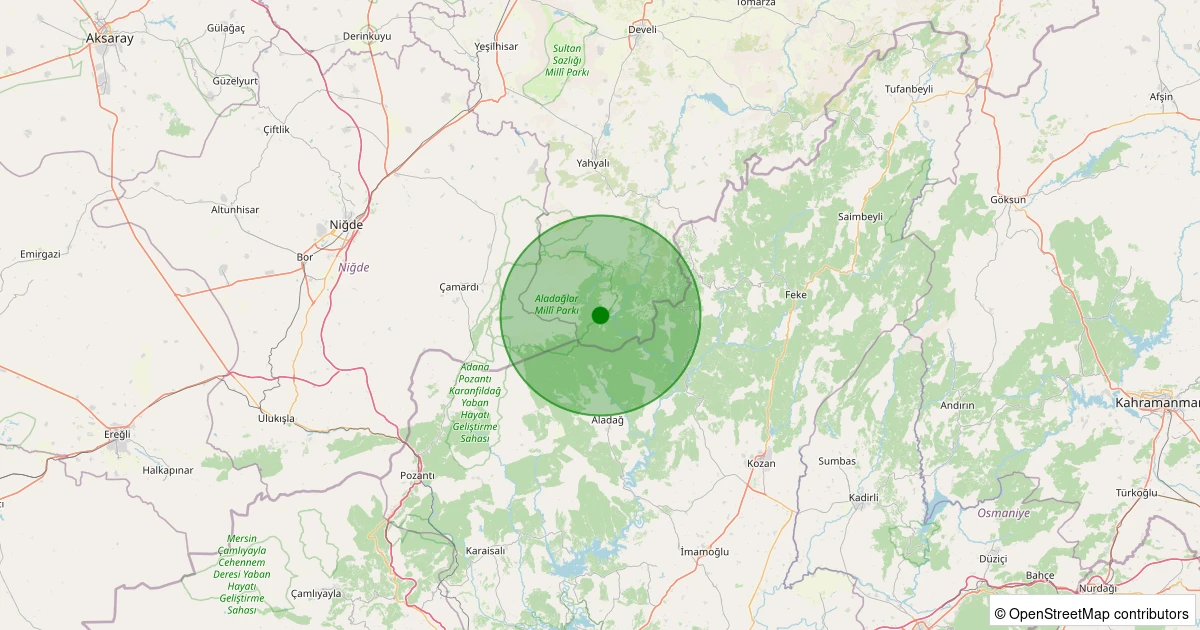 Son 7 gün içinde Yahyalı - Kapuzbaşı noktasından 100 km yarıçap içerisinde meydana gelen diğer depremler: