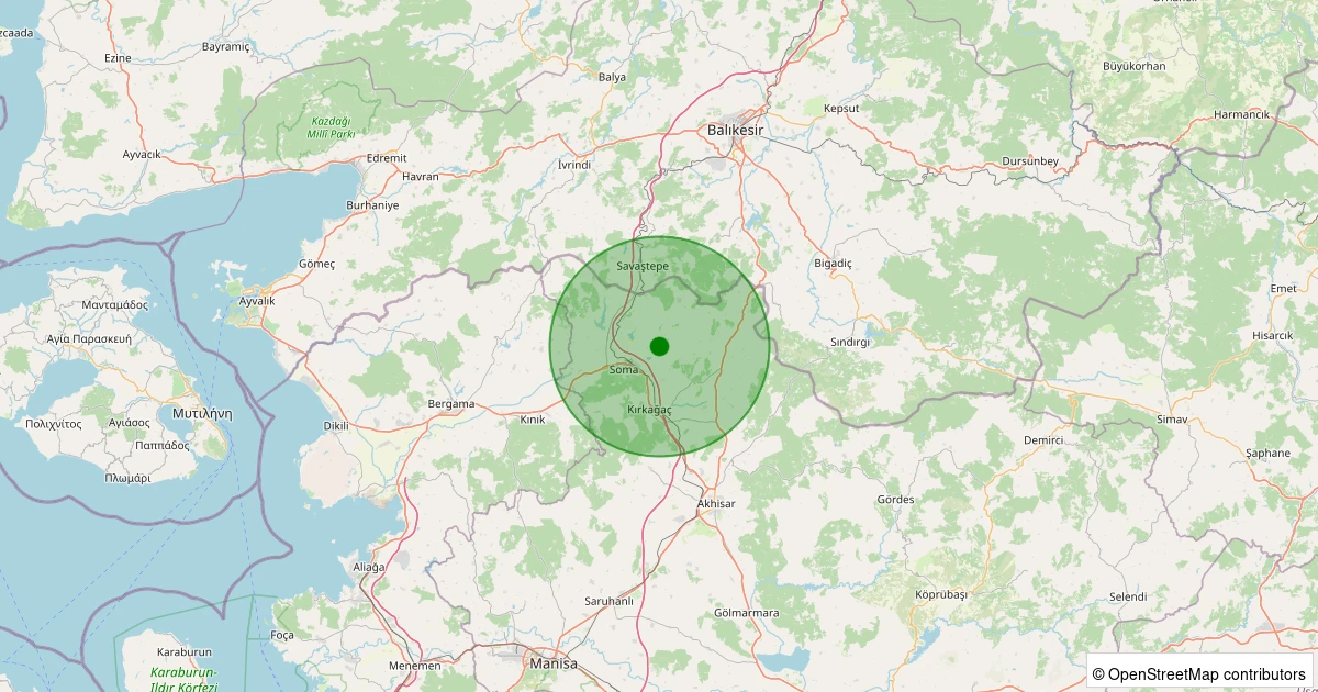 Son 7 gün içinde Soma - Evciler noktasından 100 km yarıçap içerisinde meydana gelen diğer depremler: