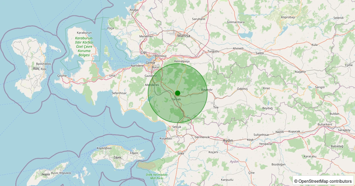 Son 7 gün içinde Torbalı - Gazi Mustafa Kemal noktasından 100 km yarıçap içerisinde meydana gelen diğer depremler: