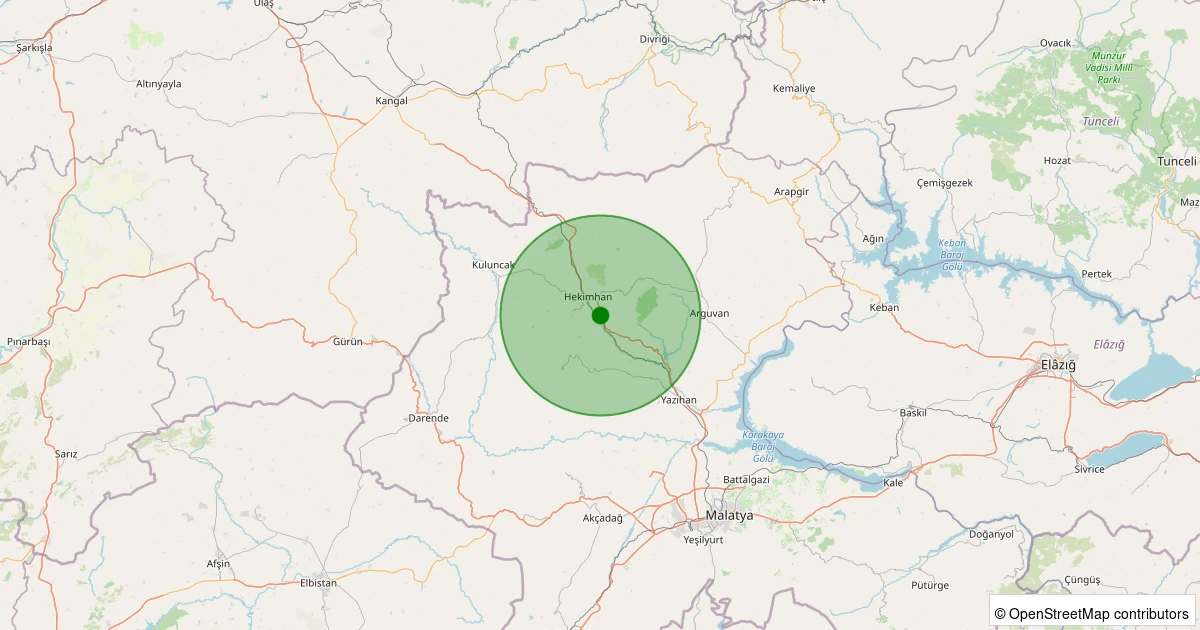 Son 7 gün içinde Hekimhan - Köprülü Mehmetpaşa noktasından 100 km yarıçap içerisinde meydana gelen diğer depremler:
