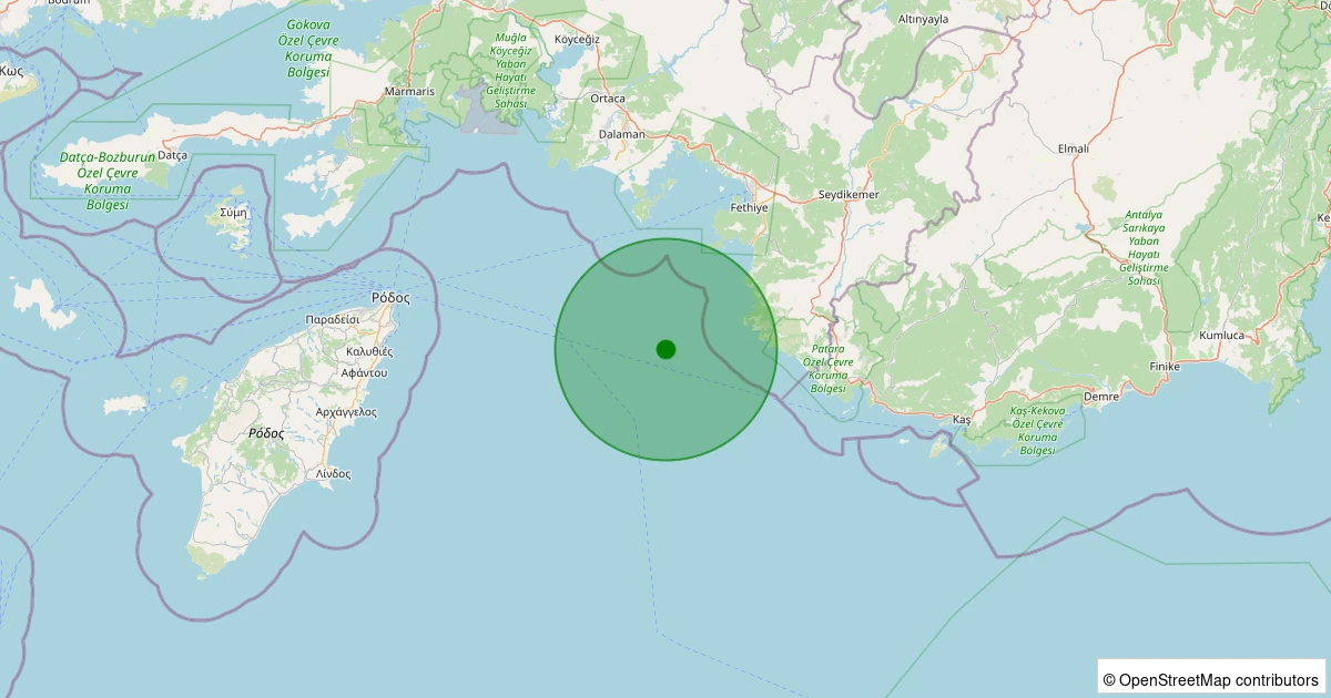 Son 7 gün içinde Akdeniz - [24.39 km] Fethiye (Muğla) noktasından 100 km yarıçap içerisinde meydana gelen diğer depremler: