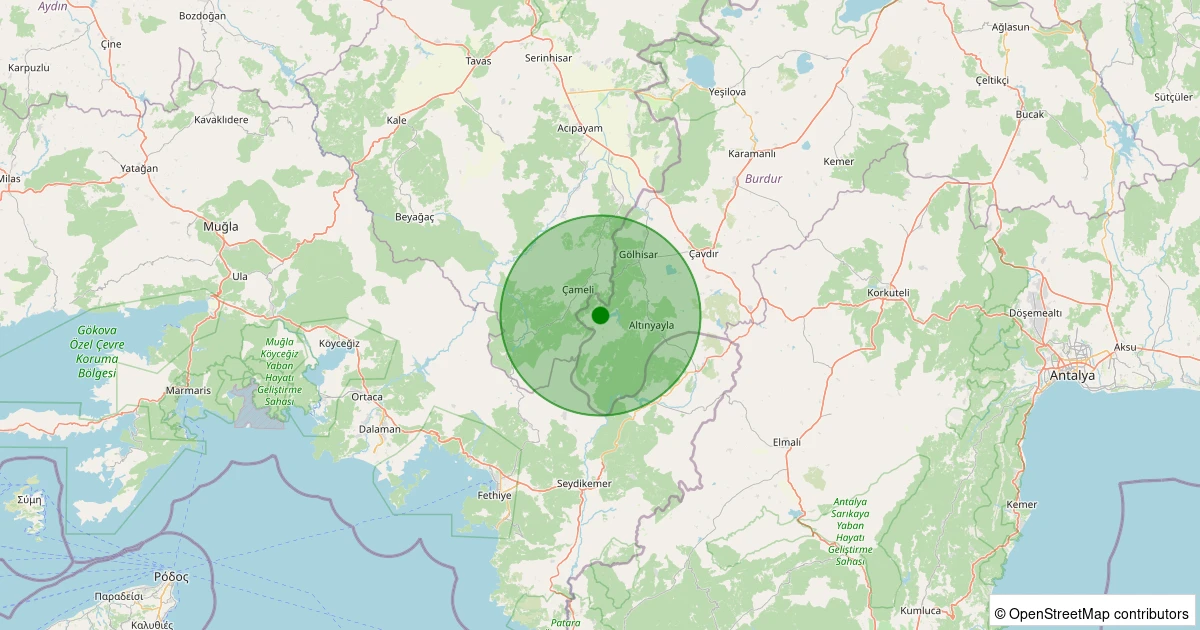 Son 7 gün içinde Gölhisar - Yeşildere Köyü noktasından 100 km yarıçap içerisinde meydana gelen diğer depremler: