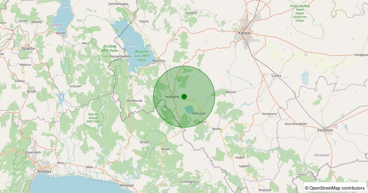 Son 7 gün içinde Seydişehir - Kisecik noktasından 100 km yarıçap içerisinde meydana gelen diğer depremler: