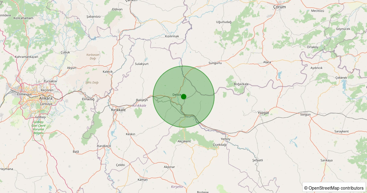 Son 7 gün içinde Delice - Baraklı Köyü noktasından 100 km yarıçap içerisinde meydana gelen diğer depremler: