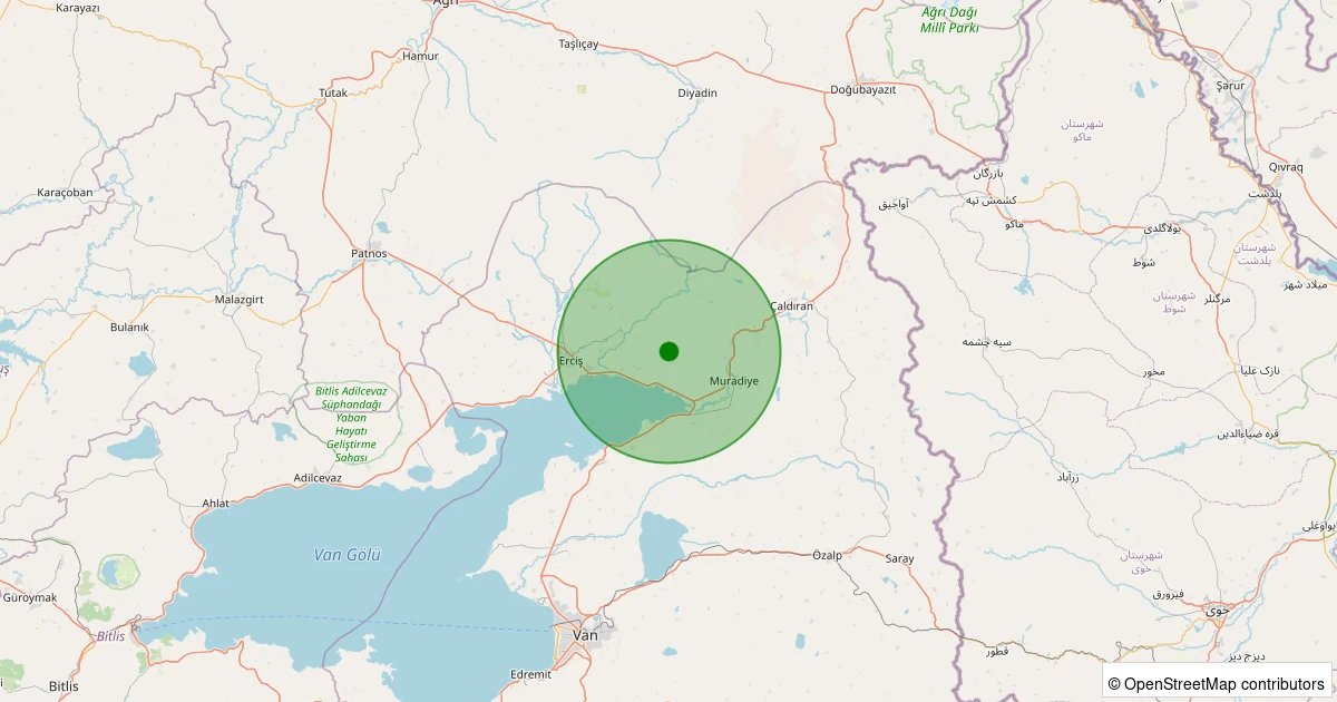 Son 7 gün içinde Erciş noktasından 100 km yarıçap içerisinde meydana gelen diğer depremler: