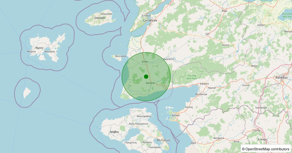 Son 7 gün içinde Ayvacık - Bilaller Köyü noktasından 100 km yarıçap içerisinde meydana gelen diğer depremler: