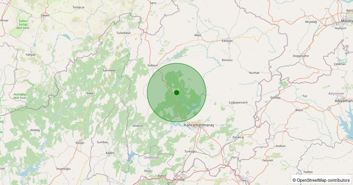 Son 7 gün içinde Onikişubat - Şahinkayası Yüceyurt noktasından 100 km yarıçap içerisinde meydana gelen diğer depremler: