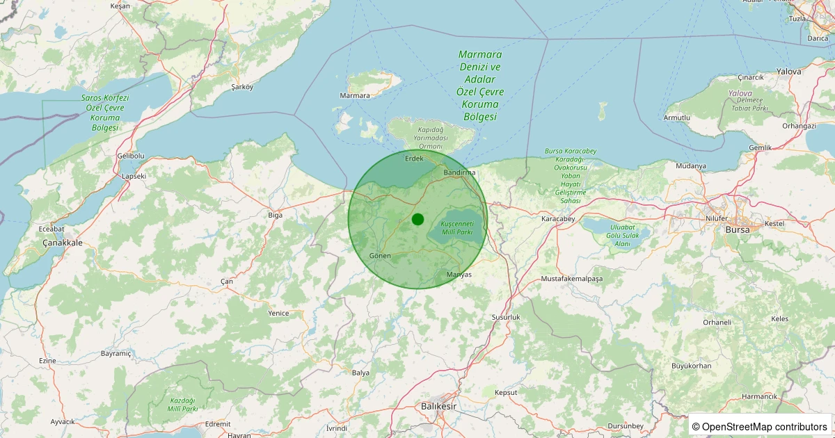 Son 7 gün içinde Gönen - Killik noktasından 100 km yarıçap içerisinde meydana gelen diğer depremler: