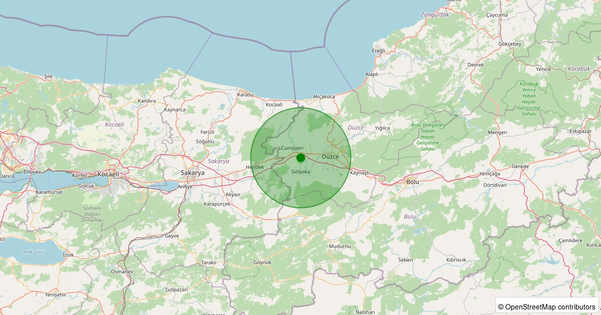 Son 7 gün içinde Gümüşova - Elmacık Köyü noktasından 100 km yarıçap içerisinde meydana gelen diğer depremler: