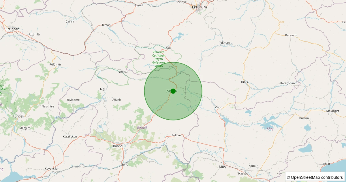 Son 7 gün içinde Karlıova - Seyrantepe noktasından 100 km yarıçap içerisinde meydana gelen diğer depremler: