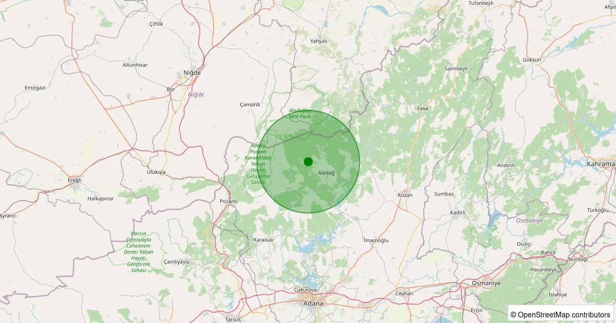 Son 7 gün içinde Aladağ - Yetimli noktasından 100 km yarıçap içerisinde meydana gelen diğer depremler: