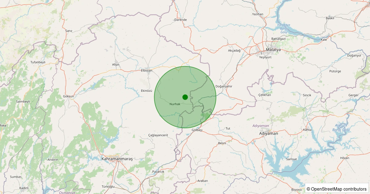 Son 7 gün içinde Nurhak - K.Tatlar Pınarbaşı noktasından 100 km yarıçap içerisinde meydana gelen diğer depremler: