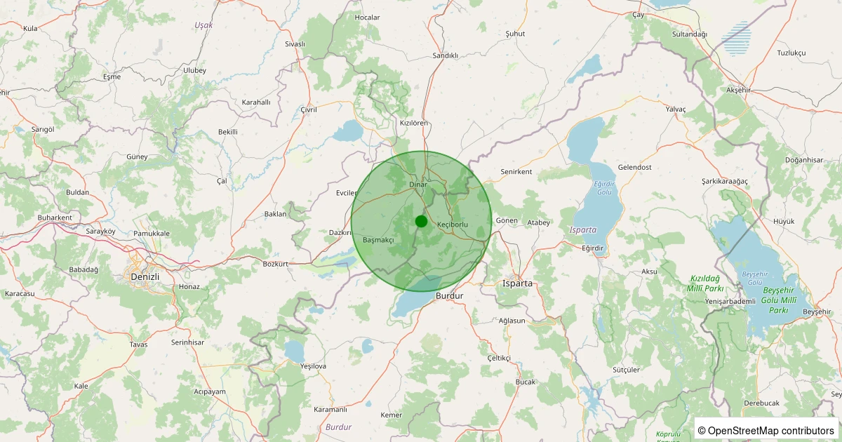 Son 7 gün içinde Keçiborlu - Kaplanlı Köyü noktasından 100 km yarıçap içerisinde meydana gelen diğer depremler: