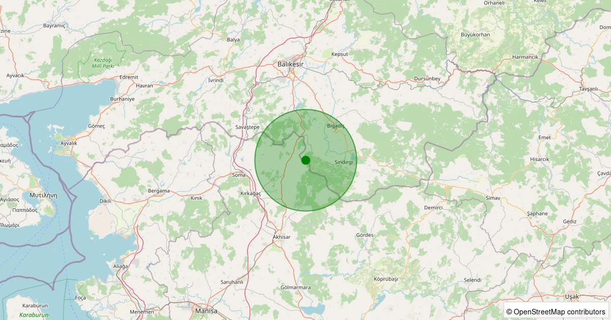 Son 7 gün içinde Sındırgı - Eğridere noktasından 100 km yarıçap içerisinde meydana gelen diğer depremler:
