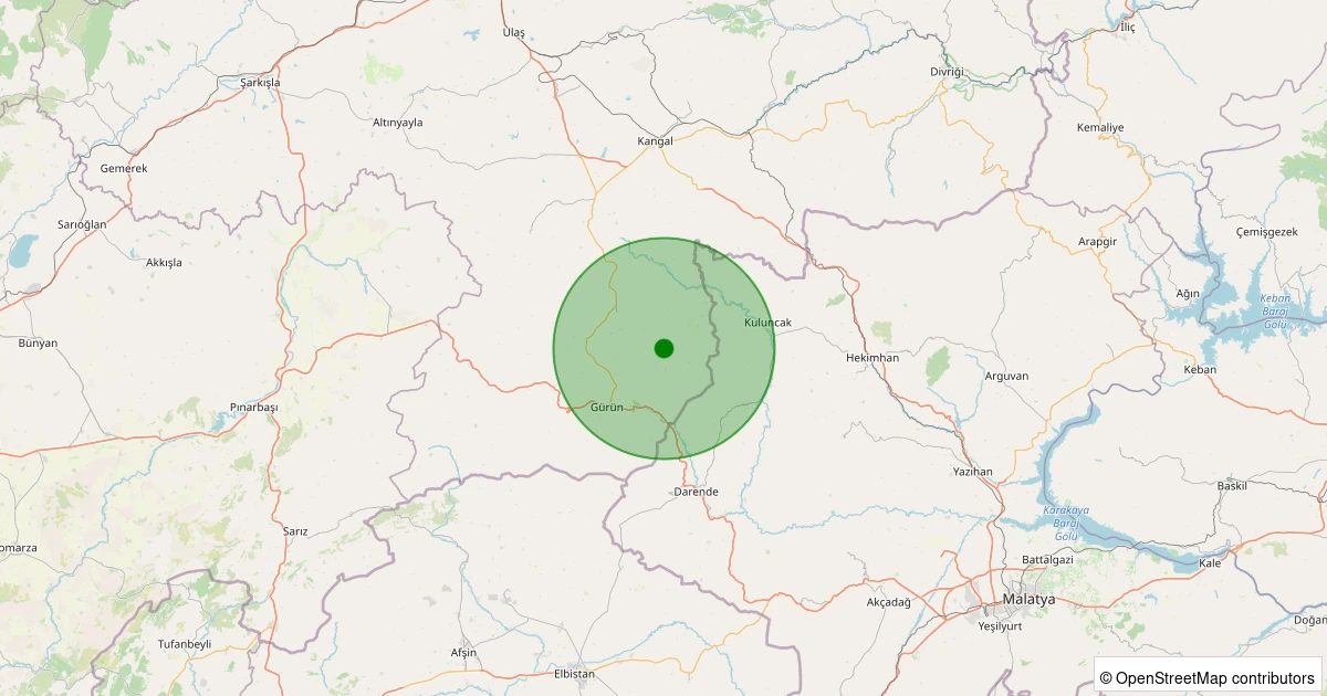 Son 7 gün içinde Gürün - Külahlı Köyü noktasından 100 km yarıçap içerisinde meydana gelen diğer depremler: