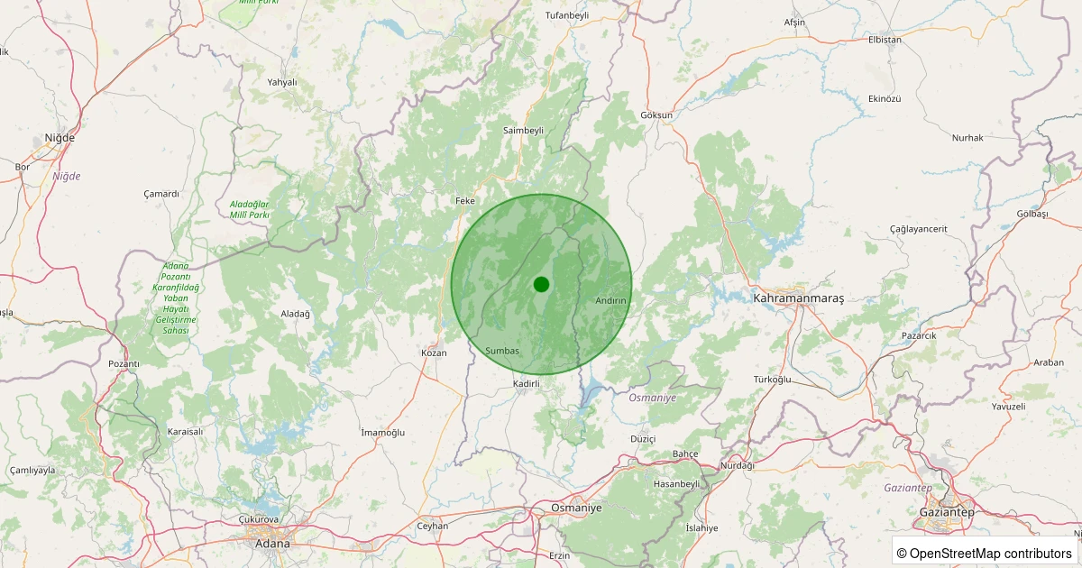Son 7 gün içinde Kadirli - Kösepınarı Köyü noktasından 100 km yarıçap içerisinde meydana gelen diğer depremler: