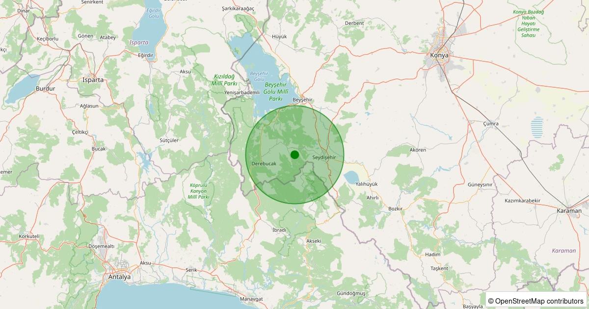 Son 7 gün içinde Derebucak - Durak(Kirli) noktasından 100 km yarıçap içerisinde meydana gelen diğer depremler: