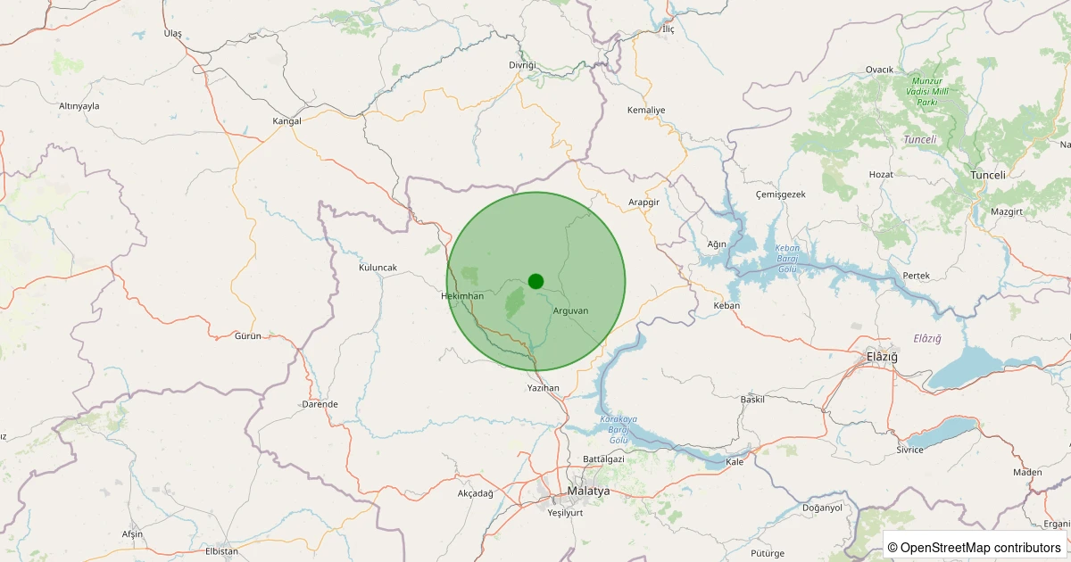 Son 7 gün içinde Arguvan - Armutlu Köyü noktasından 100 km yarıçap içerisinde meydana gelen diğer depremler: