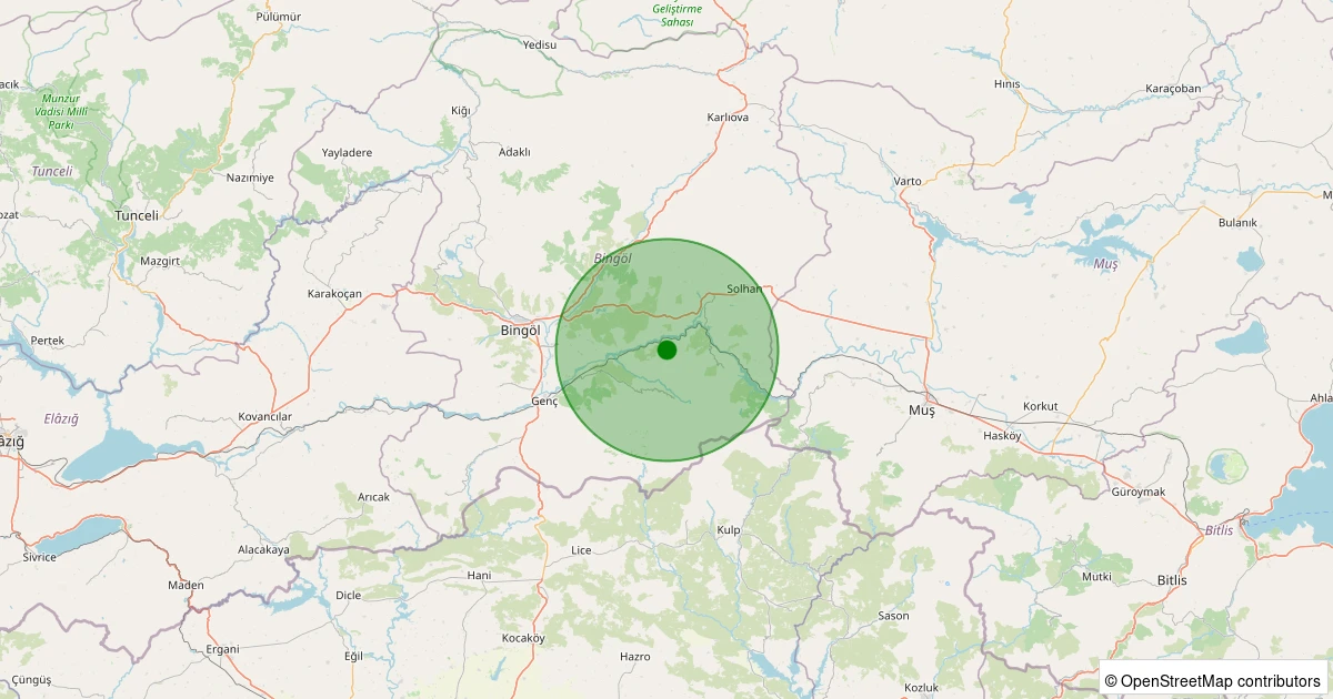 Son 7 gün içinde Genç - Kepçeli Köyü noktasından 100 km yarıçap içerisinde meydana gelen diğer depremler: