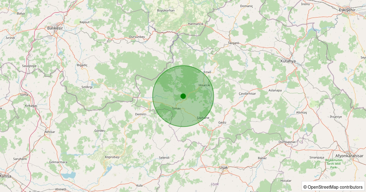 Son 7 gün içinde Simav - Karacaören Köyü noktasından 100 km yarıçap içerisinde meydana gelen diğer depremler: