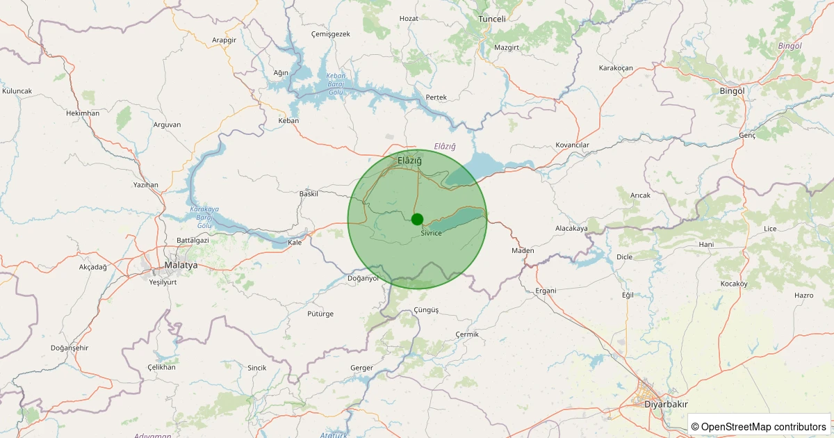 Son 7 gün içinde Sivrice - Cünt Köyü noktasından 100 km yarıçap içerisinde meydana gelen diğer depremler: